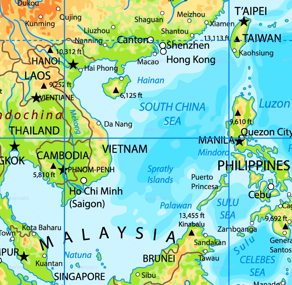 South China Sea Physical Map